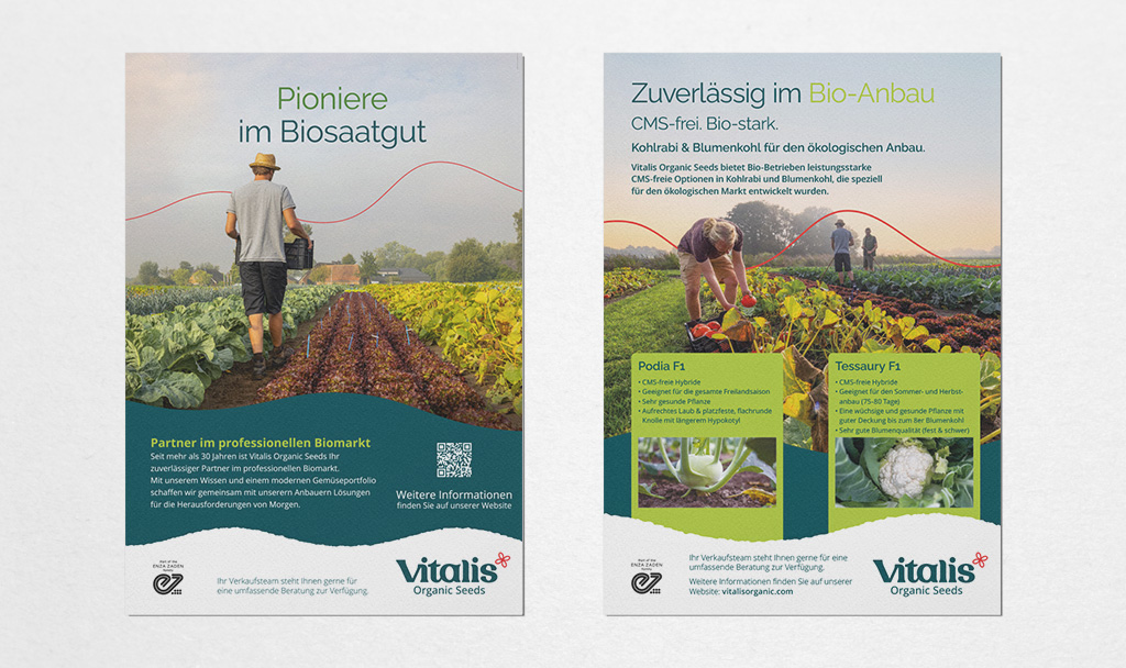 IDFCTRY heeft zich voor Vitalis Organic Seeds beziggehouden met diverse grafische ontwerpen in meerdere talen. De werkzaamheden bestonden onder meer uit de vormgeving van brochures, folders, packaging design, beursstands, advertenties en banners.